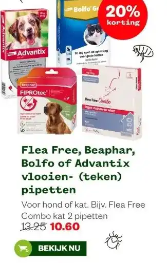 Flea Free, Beaphar, Bolfo of Advantix vlooien pipetten aanbieding en online acties bij Welkoop