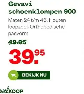 Nu in de aanbieding bij Welkoop: Gevavi schoenklompen 900✅ Actie geldig van 9-02 t/m 15-02.
