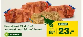 Haardhout 22 dm³ of aanmaakhout 20 dm³ in net korting bij Welkoop