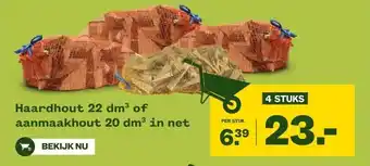 Haardhout 22 dm³ of aanmaakhout 20 dm³ in net aanbieding bij Welkoop