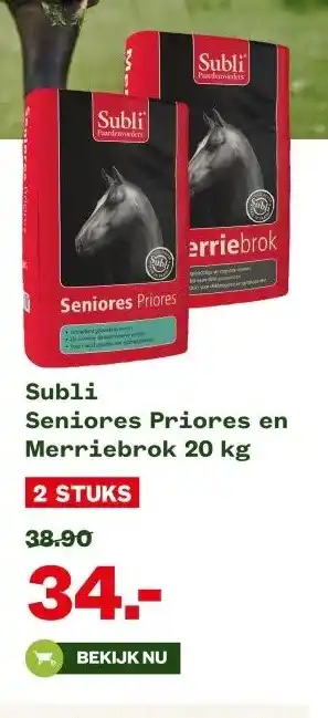 Nu in de aanbieding bij Welkoop: Subli Seniores Priores en Merriebrok✅ Actie geldig van 16-02 t/m 22-02.