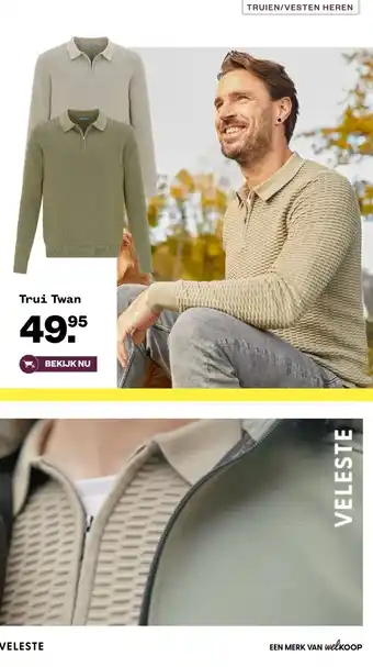 De prijs van de Trui Twan kan ook teruggevonden worden hierboven op de pagina, samen met de datum van wanneer de aanbieding beschikbaar is. Ook kun je de prijzen in de huidige Veleste magazine of op de Welkoop website controleren. De aanbiedingen verzekeren je van het kopen van de Welkoop producten voor de laagste prijs.