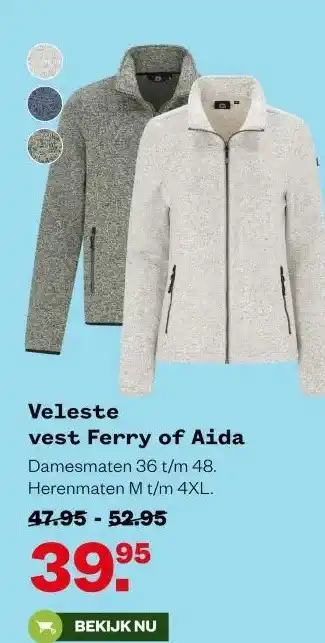 Nu in de aanbieding bij Welkoop: Veleste vest Ferry of Aida✅ Actie geldig van 16-02 t/m 22-02.