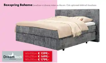 De aanbieding is verkrijgbaar in verschillende winkels, bekijk alle producten om de goedkoopste Boxspring Bahama te krijgen. Als je graag wilt kijken of het artikel met meer korting te koop is in een andere winkel, bekijk de categorie 'Wonen'. Wellicht vind je deze aanbiedingen ook interessant: Boxspring Bahama, Boxspring Bahama & DreamTech Boxspring Bahama.