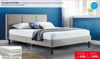 De aanbieding is verkrijgbaar in verschillende winkels, bekijk alle producten om de goedkoopste Compleet bed Ritz te krijgen. Als je graag wilt kijken of het artikel met meer korting te koop is in een andere winkel, bekijk de categorie 'Wonen'. Wellicht vind je deze aanbiedingen ook interessant: Compleet bed Ritz, Bed & Bed Maudy.