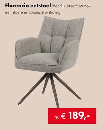 De aanbieding is verkrijgbaar in verschillende winkels, bekijk alle producten om de goedkoopste Florencio eetstoel te krijgen. Als je graag wilt kijken of het artikel met meer korting te koop is in een andere winkel, bekijk de categorie 'Wonen'. Wellicht vind je deze aanbiedingen ook interessant: Esperanza eetstoel, Savona eetstoel & Santero eetstoel.