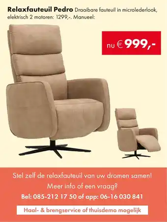 De aanbieding is verkrijgbaar in verschillende winkels, bekijk alle producten om de goedkoopste Relaxfauteuil te krijgen. Als je graag wilt kijken of het artikel met meer korting te koop is in een andere winkel, bekijk de categorie 'Wonen'. Wellicht vind je deze aanbiedingen ook interessant: Relaxfauteuil Jackson, Relaxfauteuil Jackson & Relaxfauteuil Minardi.