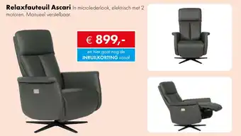 De aanbieding is verkrijgbaar in verschillende winkels, bekijk alle producten om de goedkoopste Relaxfauteuil Ascari te krijgen. Als je graag wilt kijken of het artikel met meer korting te koop is in een andere winkel, bekijk de categorie 'Wonen'. Wellicht vind je deze aanbiedingen ook interessant: Relaxfauteuil Hessa, Relaxfauteuil Silva & Relaxfauteuil Torino.
