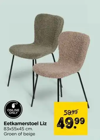 De aanbieding is verkrijgbaar in verschillende winkels, bekijk alle producten om de goedkoopste Eetkamerstoel Liz te krijgen. Als je graag wilt kijken of het artikel met meer korting te koop is in een andere winkel, bekijk de categorie 'Wonen'. Wellicht vind je deze aanbiedingen ook interessant: Relaxfauteuil Liz elektrisch verstelbaar, Eetkamerstoel Mogadishu & Eetkamerstoel Sporo.