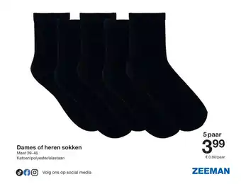 Dames of heren sokken Maat 39-46, 5 paar voor € 3.99 bij ZEEMAN