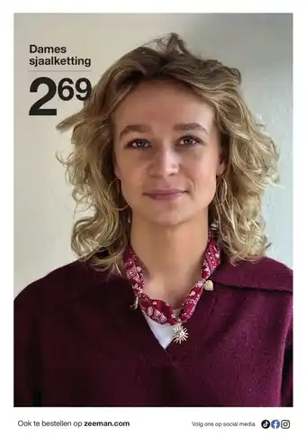 Zeeman biedt naast de Dames sjaalketting een ruime collectie producten aan. Houd de wekelijkse Zeeman folder in de gaten om de beste aanbiedingen en acties te vinden. Naast Dames sjaalketting, kunt u ook de volgende aanbiedingen vinden: Dames sjaalketting, Dames kersttrui & Dames hipster.