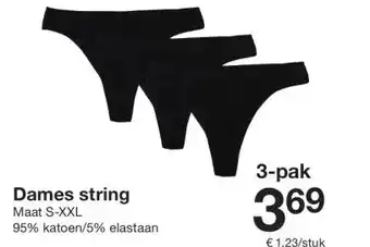 Nu in de aanbieding bij Zeeman: Dames string✅ Actie geldig van 28-02 t/m 13-03.
