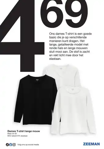 Nu in de aanbieding bij Zeeman: Dames T-shirt lange mouw✅ Actie geldig van 24-01 t/m 30-01.