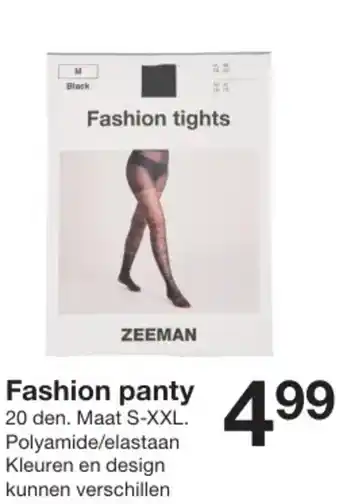 De prijs van de Fashion tights kan ook teruggevonden worden hierboven op de pagina, samen met de datum van wanneer de aanbieding beschikbaar is. Ook kun je de prijzen in de huidige Zeeman folder of op de Zeeman website controleren. De aanbiedingen verzekeren je van het kopen van de Zeeman producten voor de laagste prijs.