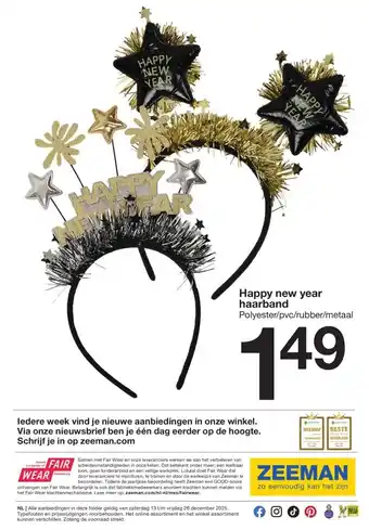 De prijs van de Happy new year haarband kan ook teruggevonden worden hierboven op de pagina, samen met de datum van wanneer de aanbieding beschikbaar is. Ook kun je de prijzen in de huidige Zeeman folder of op de Zeeman website controleren. De aanbiedingen verzekeren je van het kopen van de Zeeman producten voor de laagste prijs.