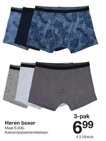 De prijs van de Heren boxer kan ook teruggevonden worden hierboven op de pagina, samen met de datum van wanneer de aanbieding beschikbaar is. Ook kun je de prijzen in de huidige Zeeman folder of op de Zeeman website controleren. De aanbiedingen verzekeren je van het kopen van de Zeeman producten voor de laagste prijs.