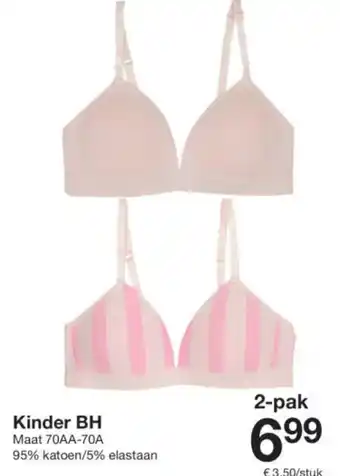 De prijs van de Kinder BH kan ook teruggevonden worden hierboven op de pagina, samen met de datum van wanneer de aanbieding beschikbaar is. Ook kun je de prijzen in de huidige Zeeman folder of op de Zeeman website controleren. De aanbiedingen verzekeren je van het kopen van de Zeeman producten voor de laagste prijs.