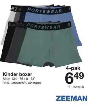 Kinder boxer 4-pak Maat 134-176/8-16Y 95% katoen/5% elastaan ZEEMAN