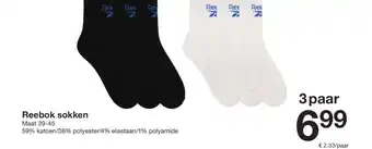 De prijs van de Reebok sokken kan ook teruggevonden worden hierboven op de pagina, samen met de datum van wanneer de aanbieding beschikbaar is. Ook kun je de prijzen in de huidige Zeeman folder of op de Zeeman website controleren. De aanbiedingen verzekeren je van het kopen van de Zeeman producten voor de laagste prijs.