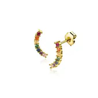 Nu in de aanbieding bij Zinzi: 10mm ZINZI gold plated zilveren oorknoppen met golfje bezet met regenboog kleurstenen ZIO2592✅ Actie geldig van 1-03 t/m 30-04.