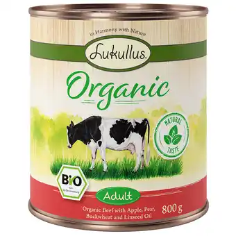 Actuele 12x800g Lukullus Organic Adult Rund met Appel Glutenvrij Honden Natvoer aanbieding bij Zooplus van 28-02 t/m 6-03.