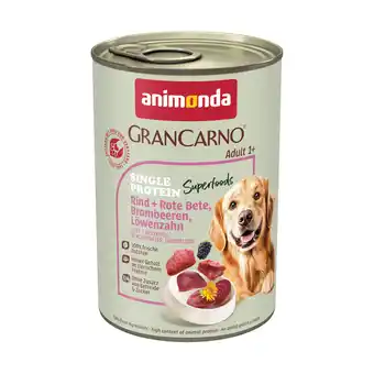 Actuele 6x400g Adult Superfoods Rund + Rode Bieten, Bramen, Paardenbloem animonda GranCarno Hondenvoer aanbieding bij Zooplus van 3-02 t/m 9-02.