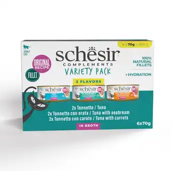 Voordeelpakket: 24x70 g Schesir Complements in bouillon mix (3 varianten) natvoer voor katten aanbieding en online acties bij Zooplus